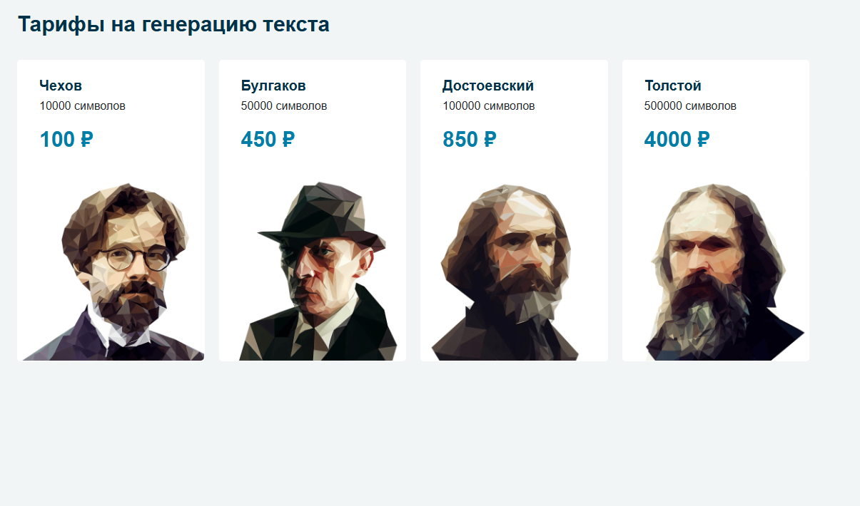 Регистрация в системе открывает доступ к бесплатному стартовому пакету: 3 000 знаков текста, 3 изображения и 5 минут транскрибации.