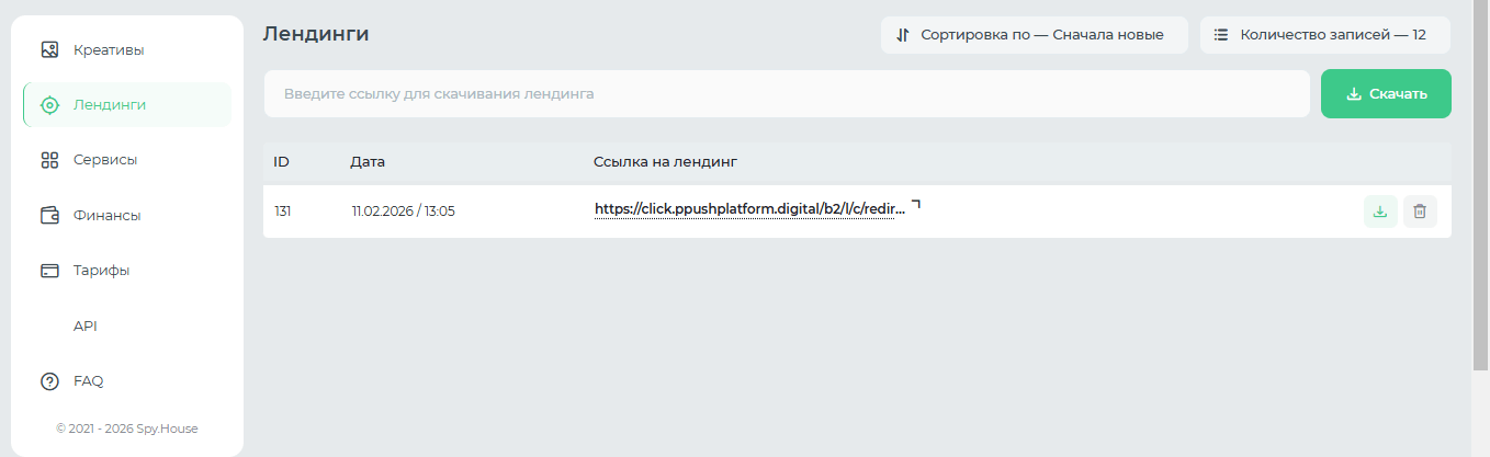 Далее пользователь анализирует лендинги: структуру страницы, блоки с преимуществами, отзывы, кнопки призыва к действию. Прямо в сервисе можно скачать лендинг или прелендинг конкурента, что позволяет получить больше полезной информации. На основе этих данных создается собственная уникальная связка, адаптированная под конкретную аудиторию.